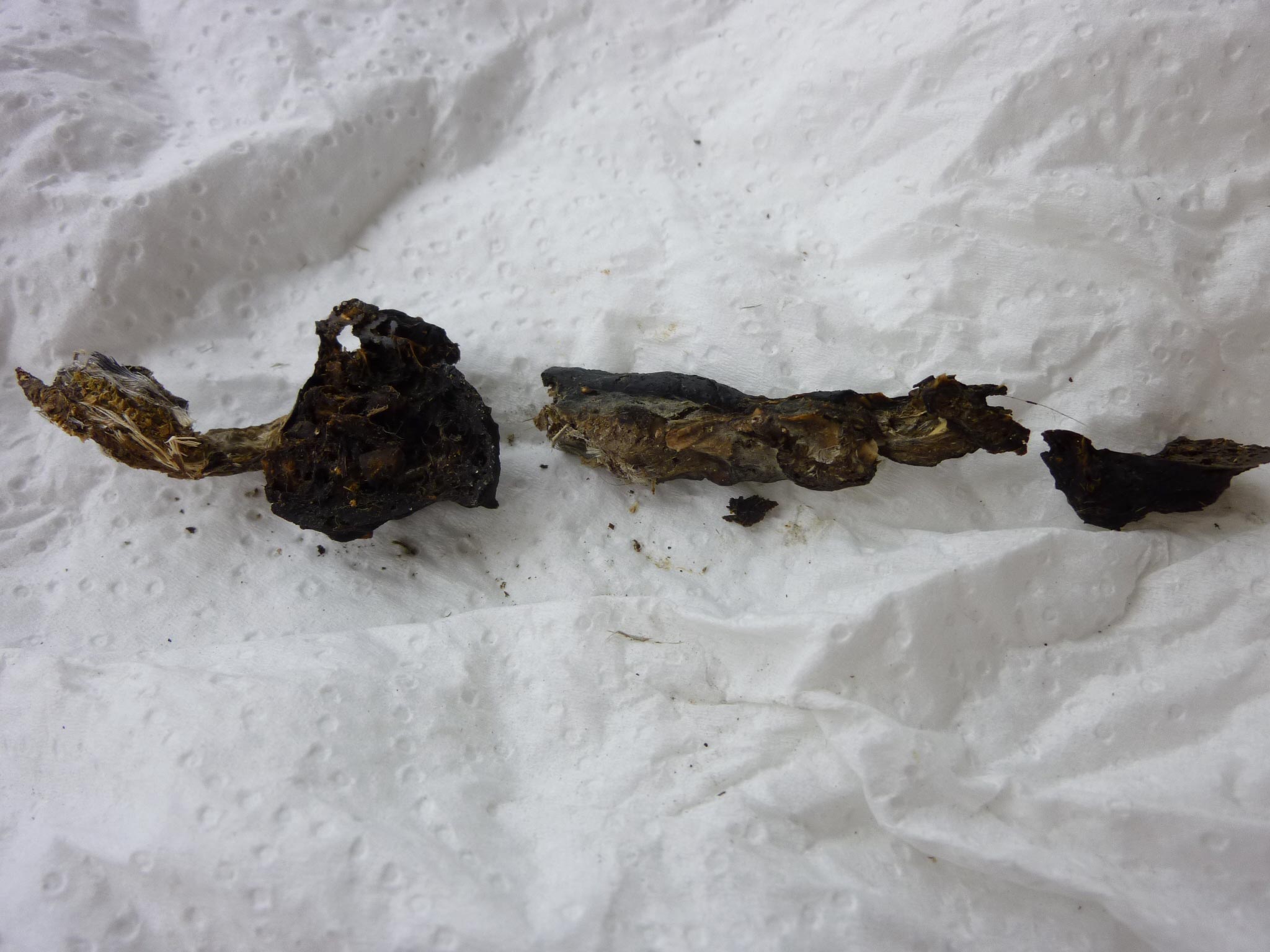 Je n'ai pas mon guide des traces sur les mammifères ici, mais cela se confirme bien, il ne faut pas oublier que la fouine est omnivore, ce qui sous-entend, que l'on va retrouver beaucoup de choses différentes dans ses crottes.